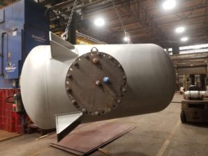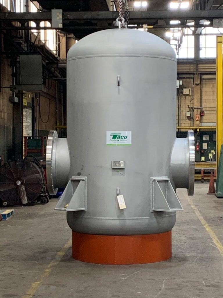 Sometimes really cool projects fall your way. This giant stainless-steel air separator was one of them. A customer called asking if Taco made “custom” tanks, air separators, etc. Of course, Taco is capable of building virtually anything made of metal / steel that can be fabricated, and everything is ASTM certified. The customer needed a VERY large, custom air separator for a process application and the system required that the air separator be constructed entirely of stainless-steel.