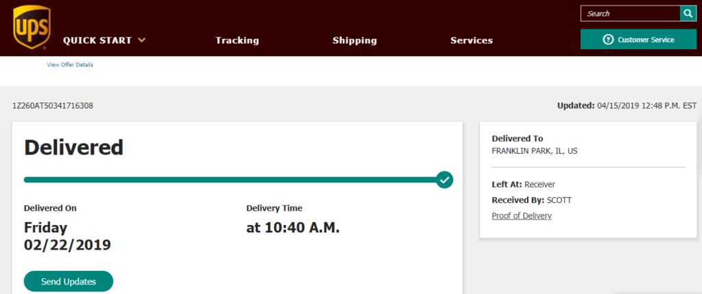 As you will see on the sample packaging slip here, the hot link will take you directly to the UPS tracking site to see where your shipment is in the process with the estimated delivery date.
