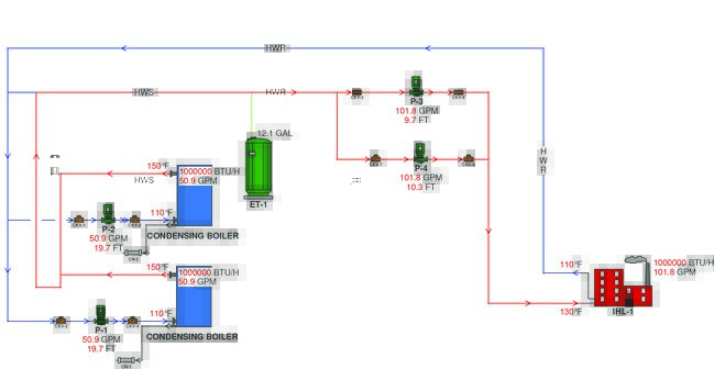 The Primary-Secondary piping arrangement includes two sets of pumps, system pumps and boiler pumps. The system pumps distribute water to the terminal units and the boiler pumps circulate water through a loop that serves the heating equipment only. The two piping systems are decoupled through what is commonly referred to as a “zero pressure bridge”, which hydraulically separates the boiler from the system. Traditionally, Primary-Secondary piping arrangements have meant full flow in the boiler loop and variable flow in the system loop. Manufacturers tend to prefer Primary-Secondary because it ensures proper flow through the boiler. Although a few manufacturers have boasted “Zero Flow” capabilities for their boilers, engineers know that no flow means no heat transfer; this begs the question, “why is the boiler firing?” Engineers have begun to shy away from Primary-Secondary due to the perceived excessive pumping energy; but is that really the case?